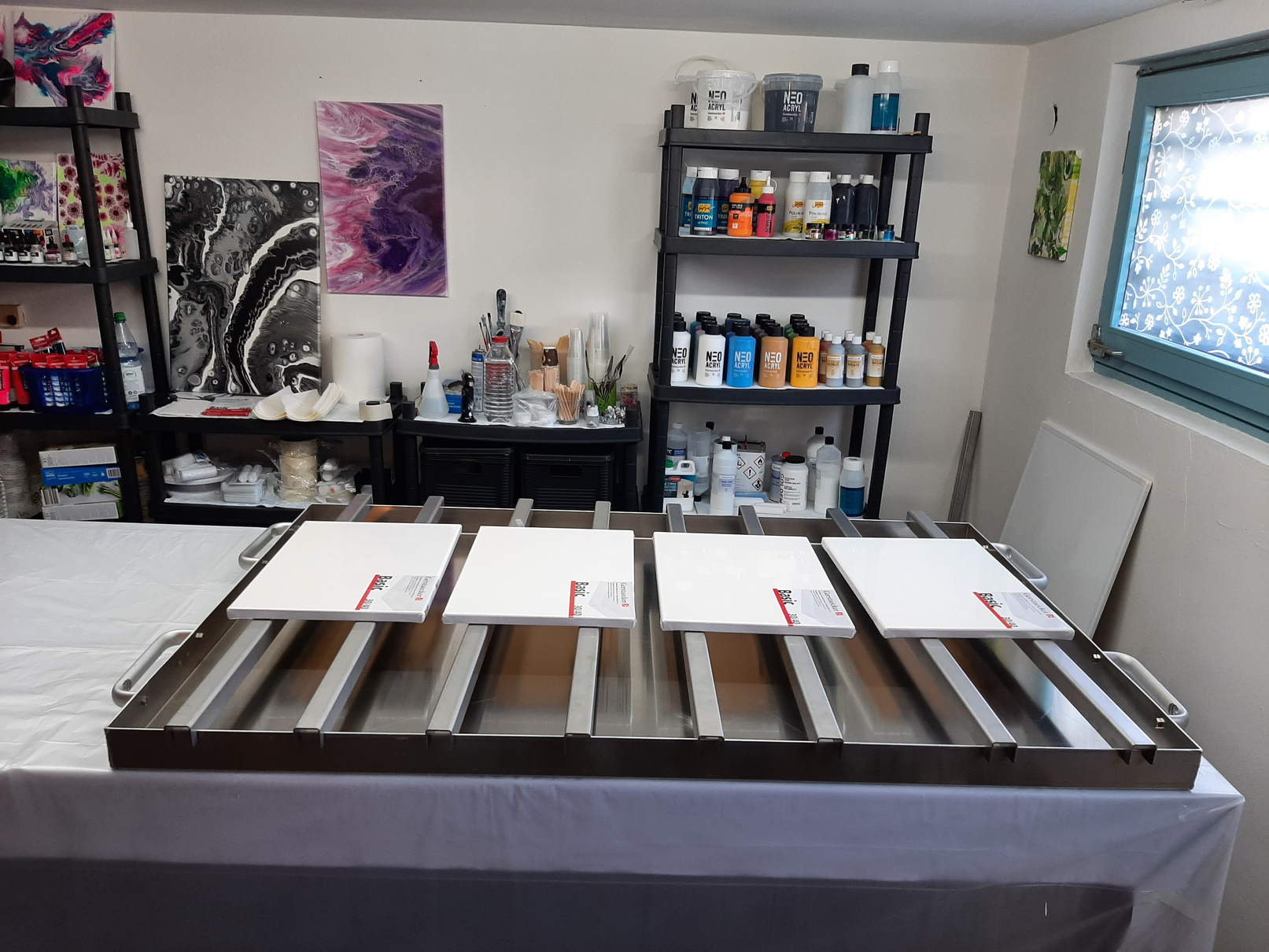 Seit 2010 Kleinunternehmerin, mit kreativen selbst hergestellten Artikeln, die das Wohnen schöner machen. Meine Bilder entstehen durch die Pouring-Technik, das ist ein komplexer Vorgang. Nicht nur durch das Gießen der Farben, sondern auch durch die Verwendung der Medien und Malwerkzeuge, entstehen einzigartige Wandbilder.